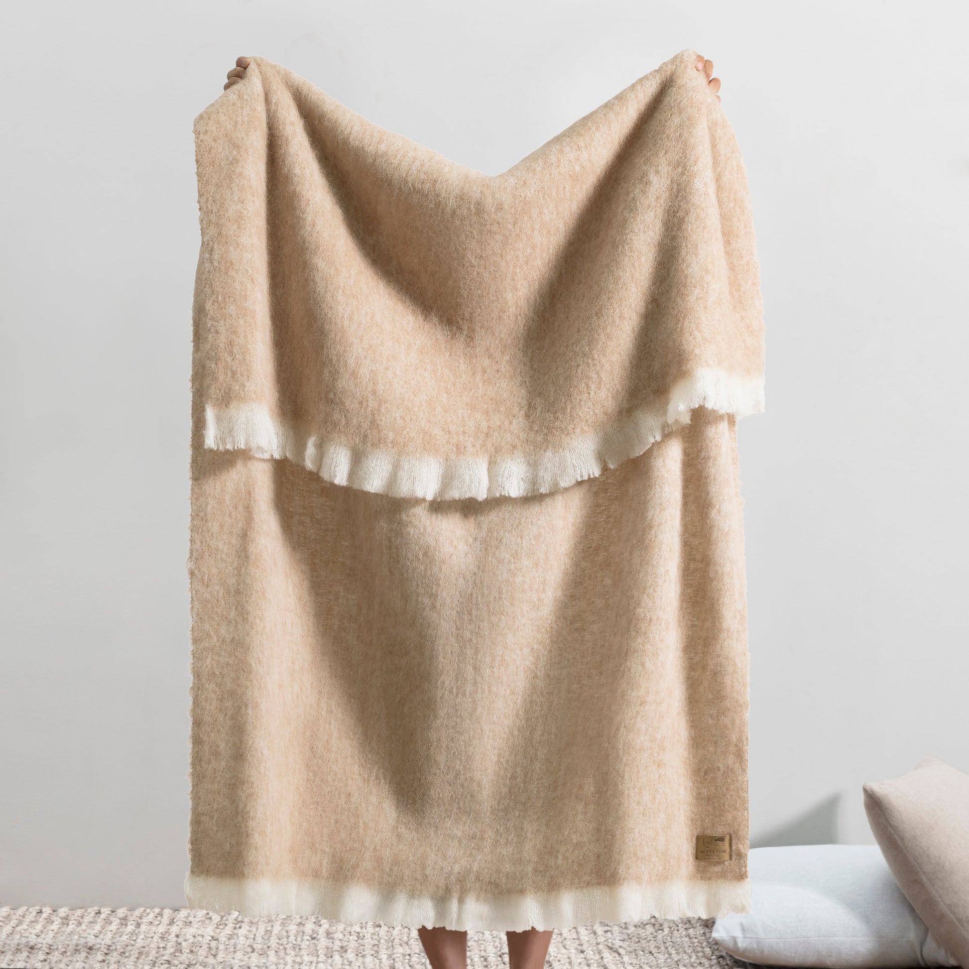 - Gentle coaxing rather than firm strokes is advisable to ease out tangle and create the downy pile for which our Alpaca throws are renowned.